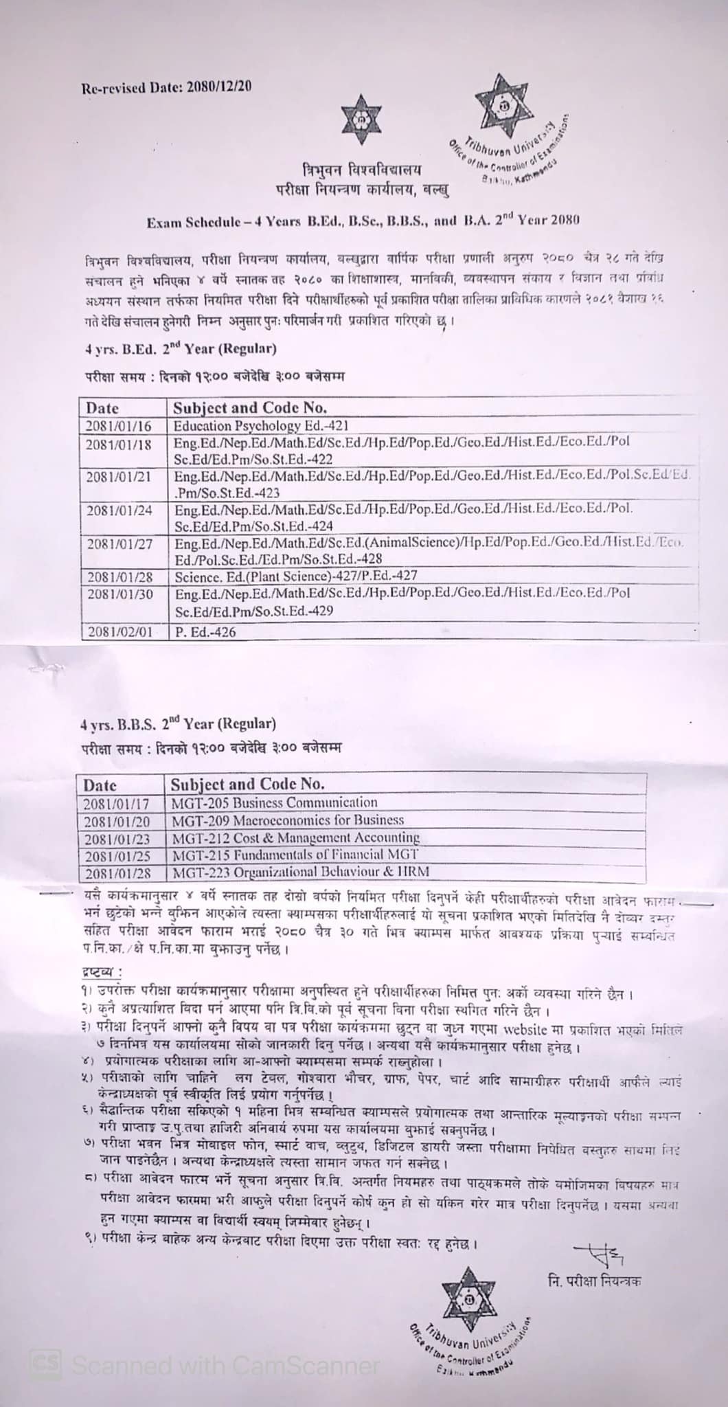 Campus chief 2080-12-20स्नातक तह दोस्रो वर्ष २०८० को बार्षिक परिक्षा तालिका